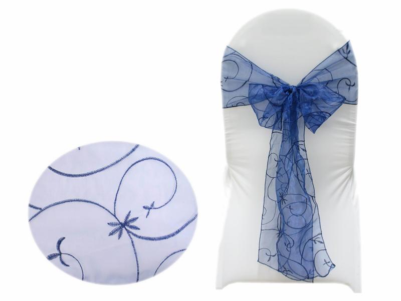 Motif Embroidery Chair Sash - Navy Blue